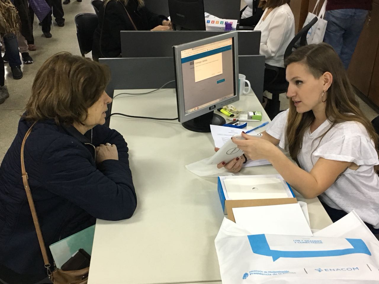 Esta tarde, en el sector de Ventanilla Única de la Municipalidad – 9 de Julio al 500 – jubilados y pensionados se acercaron para recibir la tablet que se entregó a través del “Programa +Simple”. El mismo es un acuerdo entre el intendente de la Ciudad, Rodolfo Suarez y el Enacom (Ente Nacional de Comunicaciones) que busca la inclusión digital de los adultos mayores a través de estos dispositivos que fueron entregadas de manera gratuita.