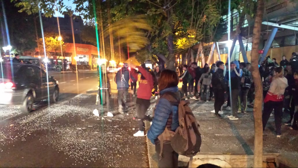 Este martes, alumnos de la Escuela Normal Tomás Godoy Cruz, presentaron las camperas de promoción del último año del ciclo lectivo y cortaron la calle en la esquina de Rivadavia y Patricias Mendocinas. Ante esto, preventores se constituyeron en el lugar para informar a alumnos y padres presentes, que se encuentra prohibido realizar cortes de calles según establece el Código de Convivencia.