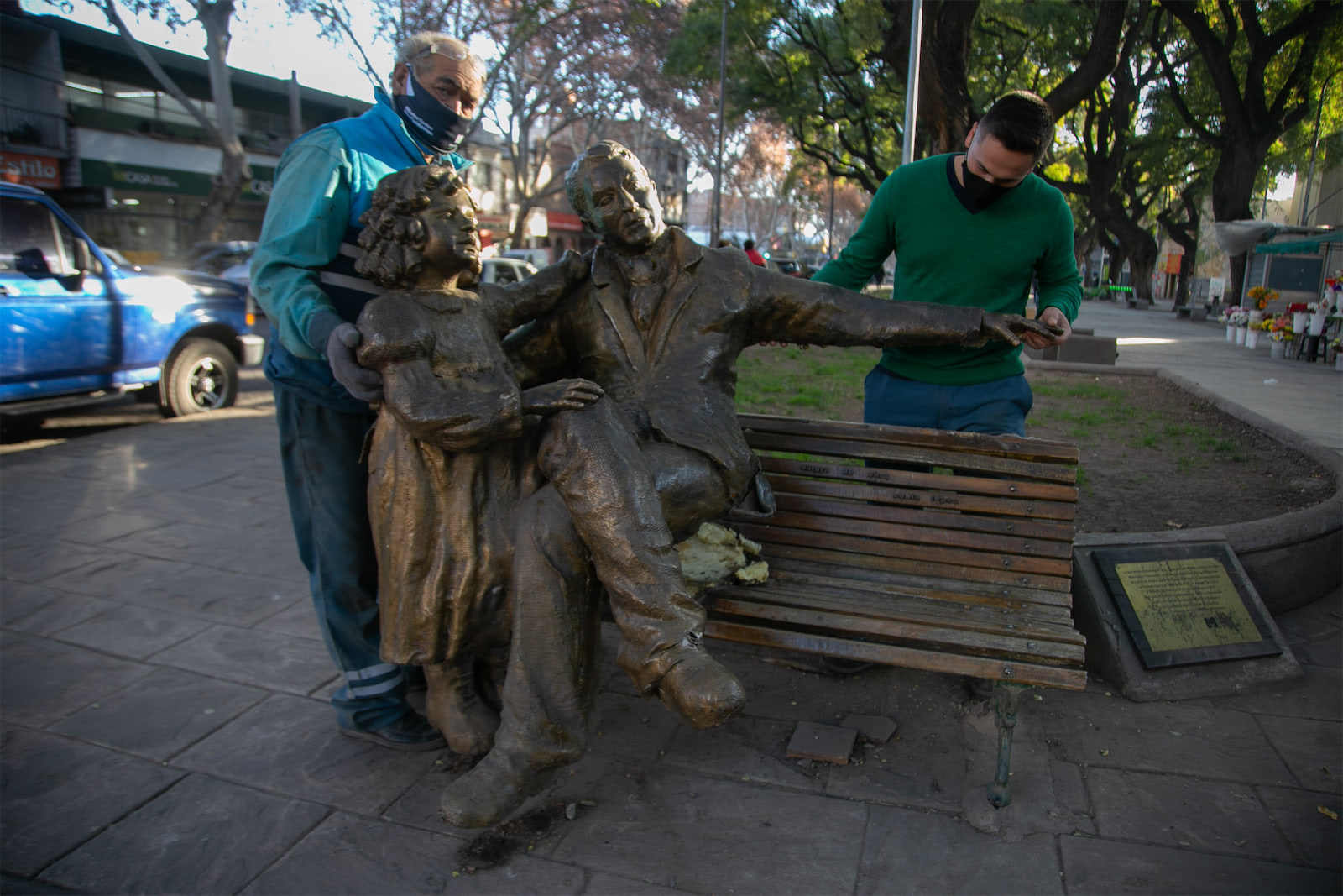 Este viernes 16 de julio, personal de la Municipalidad de la Ciudad de Mendoza coordinado por el MMAMM retiró la escultura del Libertador junto a su hija. Esta obra, que representa un homenaje al General San Martín y su hija Mercedes, está ubicada en el Paseo Alameda y la calle Corrientes.