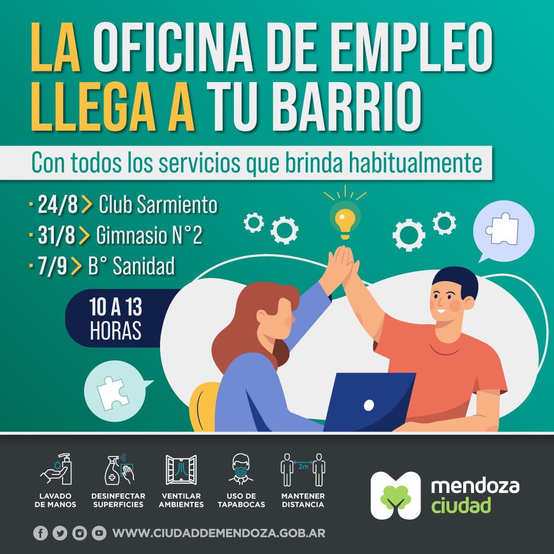 La oficina de la Dirección de Empleo y Economía Social de la Municipalidad de Mendoza comenzará a atender en barrios de la Ciudad, acercando a los vecinos los servicios que se ofrecen. Están destinados a personas que se encuentran en la búsqueda de empleo o que quieran mejorar su inserción laboral, a comercios y empresas que requieren contratar personal, y a personas que quieren iniciar un emprendimiento por cuenta propia.