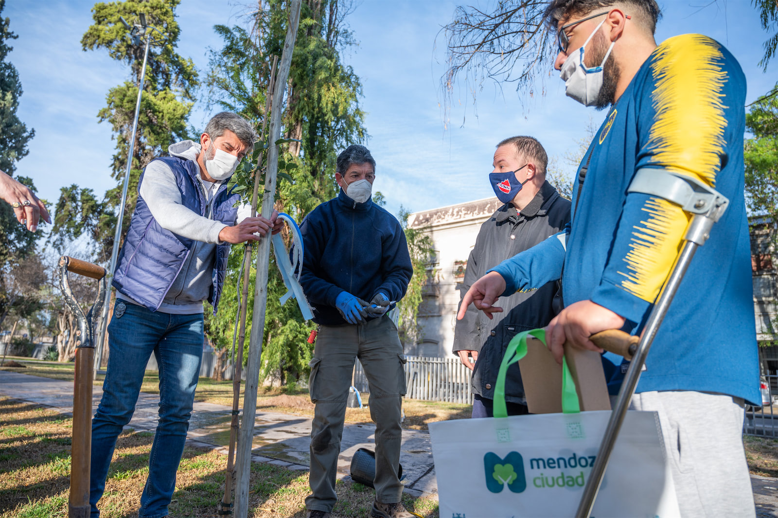 En el marco de los festejos por el Día de la Solidaridad y del Mes de la Forestación, la Municipalidad de la Ciudad de Mendoza ha organizado una agenda de actividades representatitvas. La primera de ellas tuvo lugar este sábado por la mañana en el parque O’Higgins. Allí, el intendente Ulpiano Suarez, Guardianes Ambientales y representantes de la comunidad chilena realizaron la plantación de cinco ejemplares de lapacho.