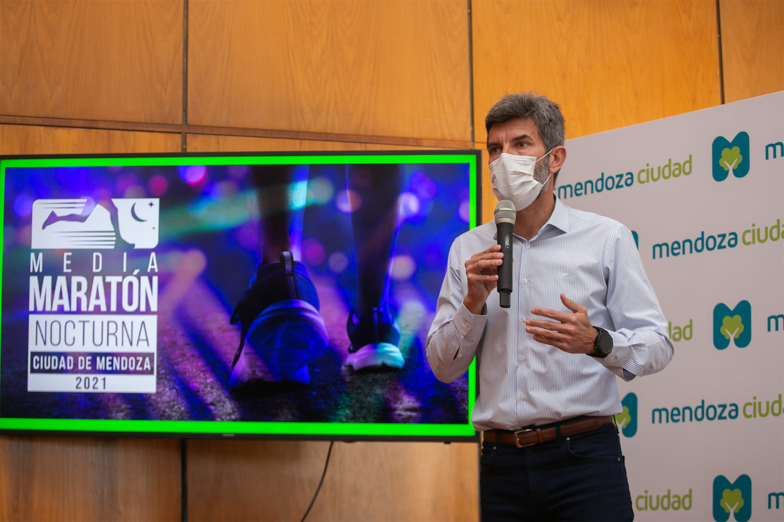 El intendente Ulpiano Suarez presentó este miércoles una interesante propuesta deportiva de la Ciudad de Mendoza, la Media Maratón Nocturna. Esta competencia, que se realizará por primera vez de noche, se llevará a cabo el 30 de octubre por las calles de la Capital. Se recorrerán las plazas, los parques y los monumentos más emblemáticos, cumplimentando siempre con los protocolos vigentes de Covid-19.